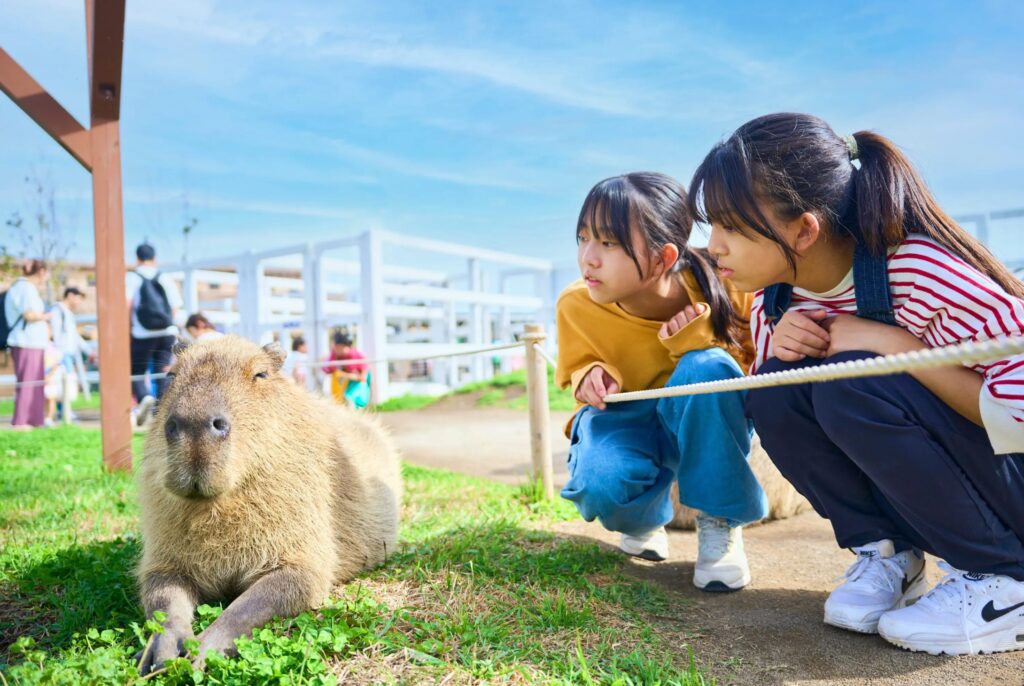 園内には小動物と触れ合えるエリアがあり、ヤギやウサギなどにエサやりができます。子供たちは大喜び間違いなし!