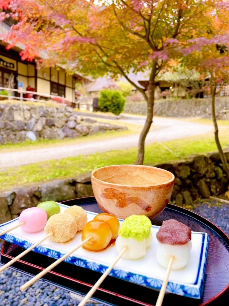 There are three places to eat at Saiko Iyashi no Sato Nemba, but this time we would like to introduce “Seiryu-tei Tea House”. Located near the reception desk, Seiryu-tei is a spacious place where you can enjoy sweets such as dumplings while viewing Mt. Fuji