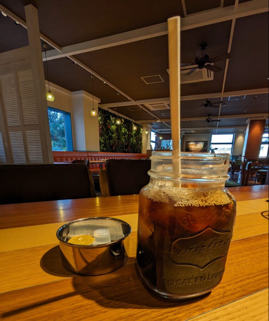 The restaurant is decorated like a Hawaiian resort, and the spacious interior and soft sofas make it a very relaxing place to spend time.