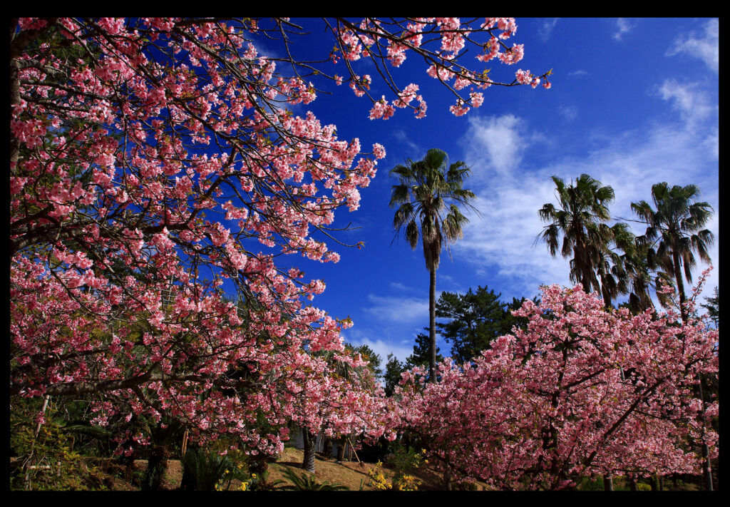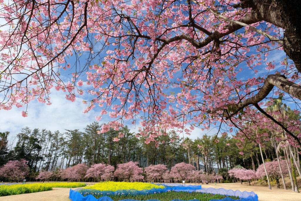 伊豆の踊子(イズノオドリコ)は、オオシマザクラ系の交雑種で花色は鮮やかなピンクが特徴です。花びらが長期間散らずに、観賞することができ開花時期は1月下旬から2月上中旬と約1ヶ月で長いのも特徴です。フラワーパークかごしまでは芝生広場やコンテストガーデンを中心に植栽されています。