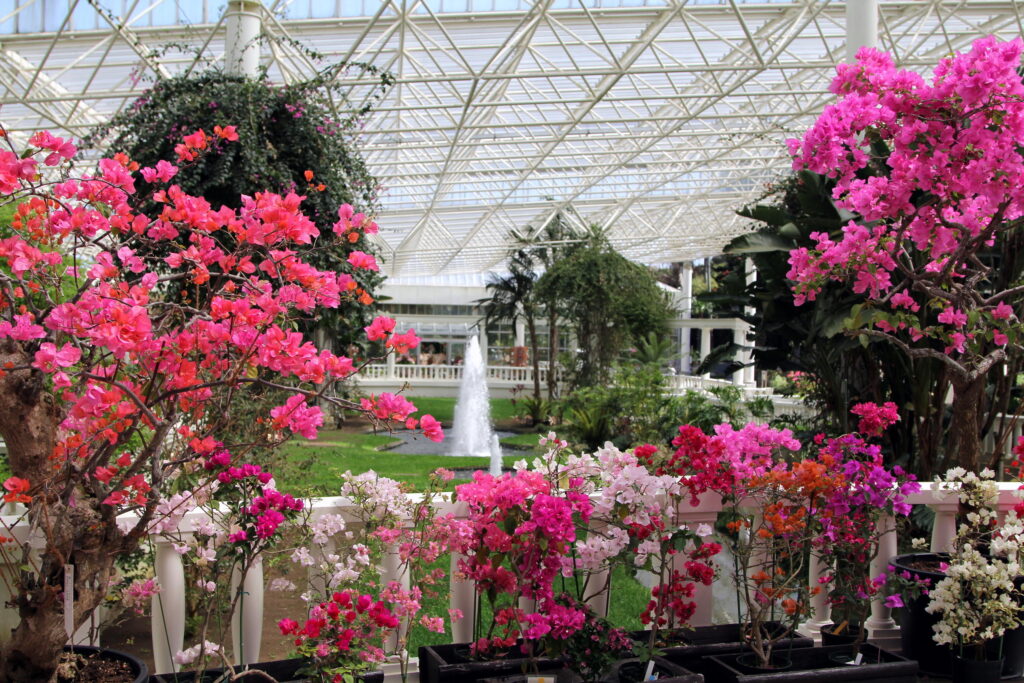 屋内庭園は、明るい透明の屋根で半人工的な環境の庭園となっています。