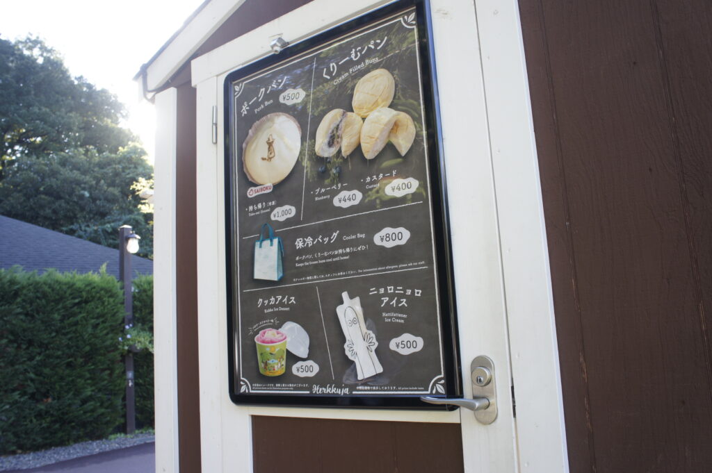 またムーミン谷エリアにはテイクアウトフードを販売するお店がいくつかあります。サイボクのソーセージを使用したホットドッグやクリームパンで有名な八天堂が「ムーミンバレーパーク」のオリジナルパッケージなどで揃うフードスタンドもあります。パーク内にベンチも用意されているので休憩の際には是非見てみてください♪