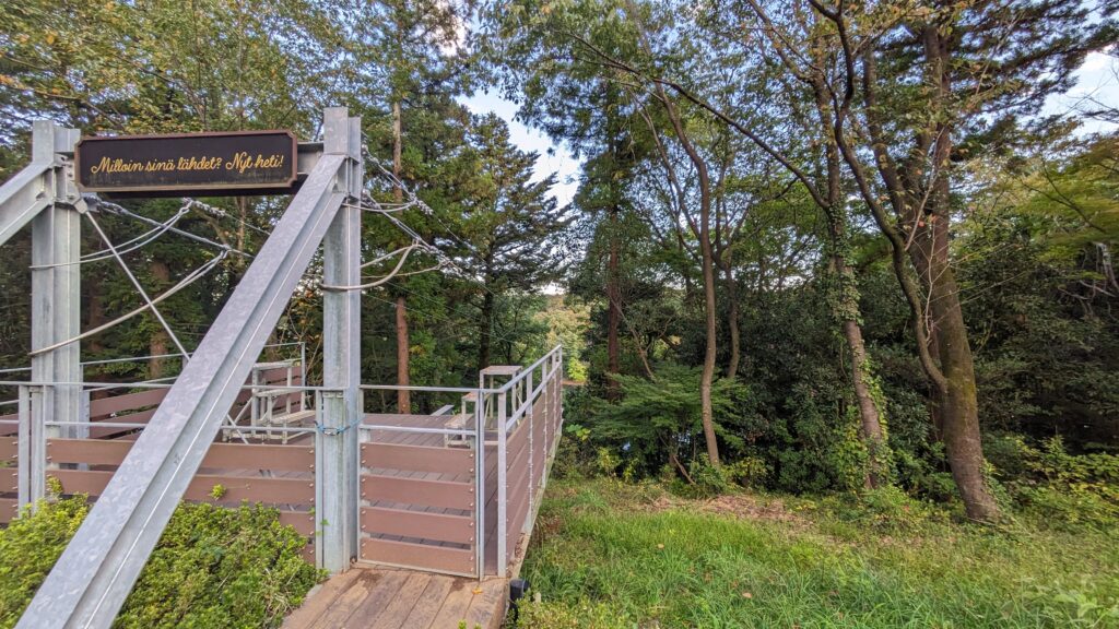 おさびし山エリアには魅力的でアクティブなアウトドア体験ができます。ヘムレンさんの遊園地はおさびし山の山頂にあるアスレチックです。木材で手作り感のあるアスレチックは見ているだけでワクワクします。飛行おにのジップラインアドベンチャーは受付はムーミン谷エリアに受付がありおさびし山まで登ってジップラインで飛び立ちます!飛行おにのように風を切り、湖の上を滑走します。