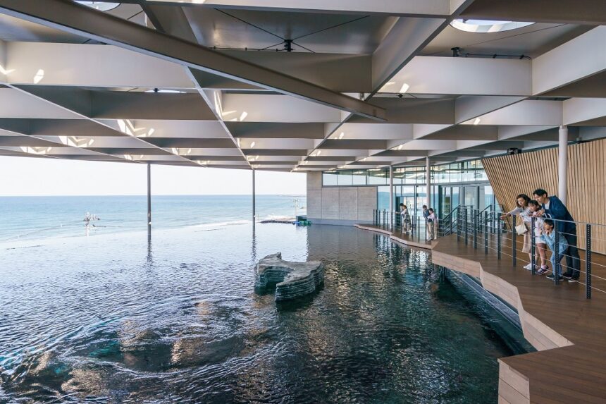 “日本海露台”是一处绝佳的景点,将大型水槽与日本海的水面融为一体。而“海豚体育场”拥有约450个座位,泳池的设计仿佛与日本海相连,宽吻海豚在这里为大家呈现精彩绝伦的表演。